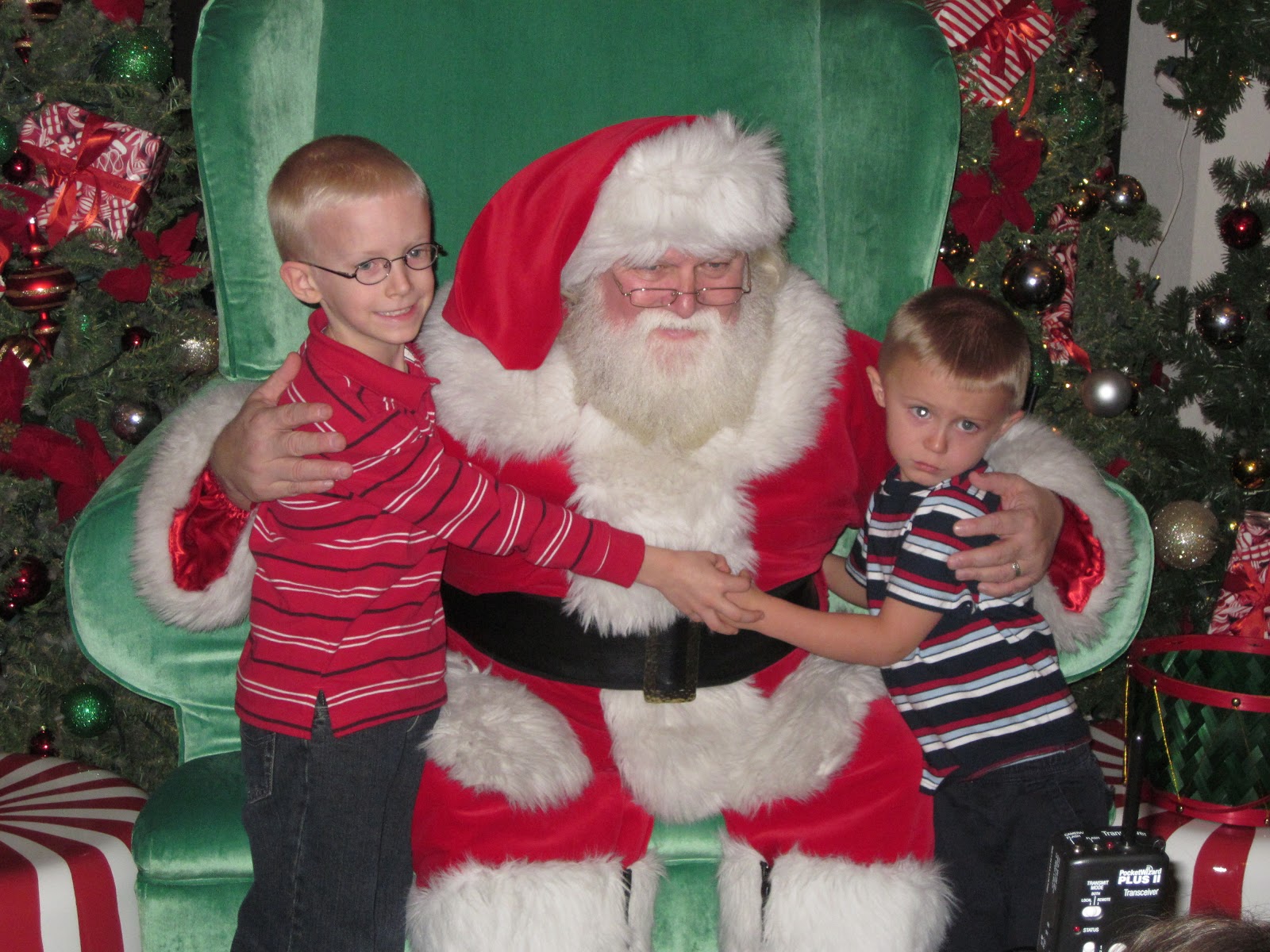 Tonight after dinner, we hunted down Santa Clause at the Yankee Candle store, and Ethan and Caleb got to tell Santa what they wanted for Christmas.  This was the first year they have been interested in going to see Santa.  Although they didn't want to sit on his lap, they did each talk to him and said afterward that it was great!